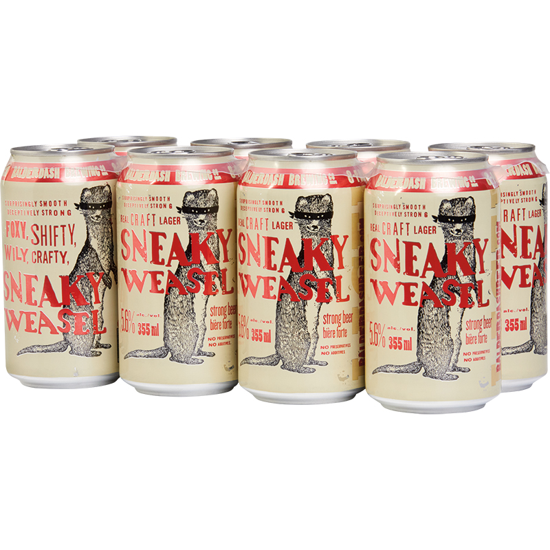 BALDERDASH BREWING – SNEAKY WEASEL CRAFT LAGER CAN 8P